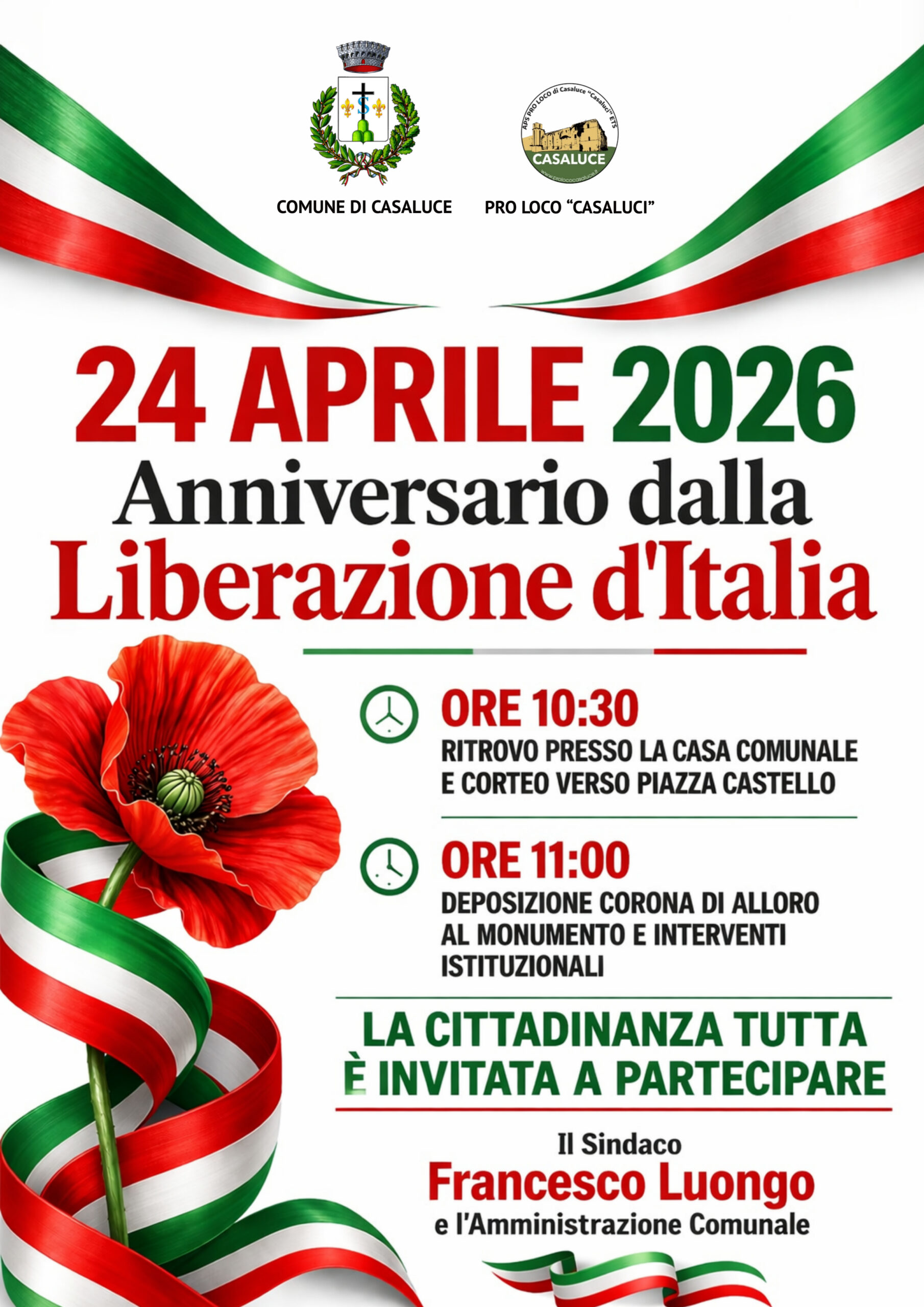 Invitiamo la cittadinanza a partecipare alla cerimonia di venerdì 24 aprile, anticipata per consentire la partecipazione degli studenti.